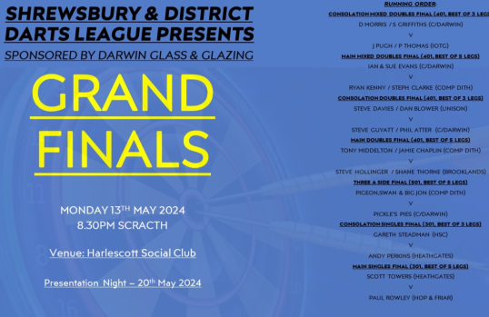 SHREWSBURY AND DISTRICT DARTS LEAGUE Home of Shrewsbury Darts Sponsored by Darwin Glass & Glazing